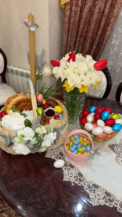 After the blessing, families go home and celebrate together. They gather together at the table and share the food from the basket. There is also a tradition of tapping Easter eggs against each other. When people do this, they say “Christ is risen!” and the other person answers “Indeed He is risen!”. The person whose egg does not crack is considered the winner.